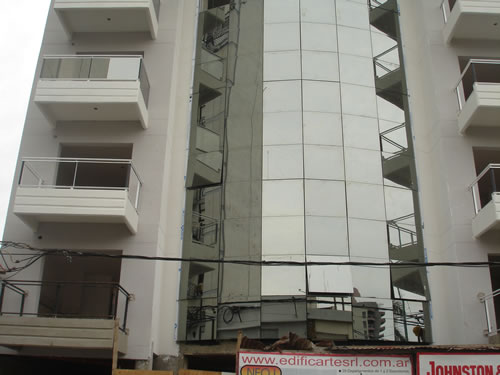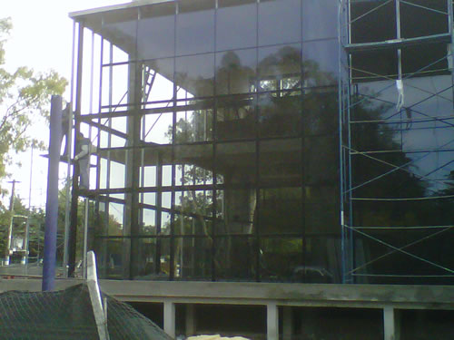 Vinoteca Parke Leloir, Ituzaingo (Pcia. Buenos Aires) Cupula Superior, claraboya piramidal con vidrio laminado de seguridad. Baranda balcon y escalera. Carpinteria en aluminio de ventanas.