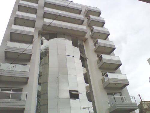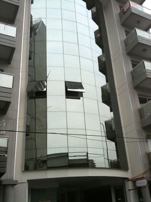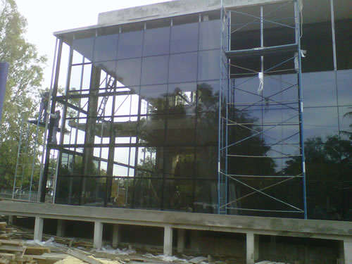 IVECO Vidriado estructural con revestimiento de estructura de H°A° en Alpolic color Silver. Ubicación ruta Panamericana ramal Pilar.
